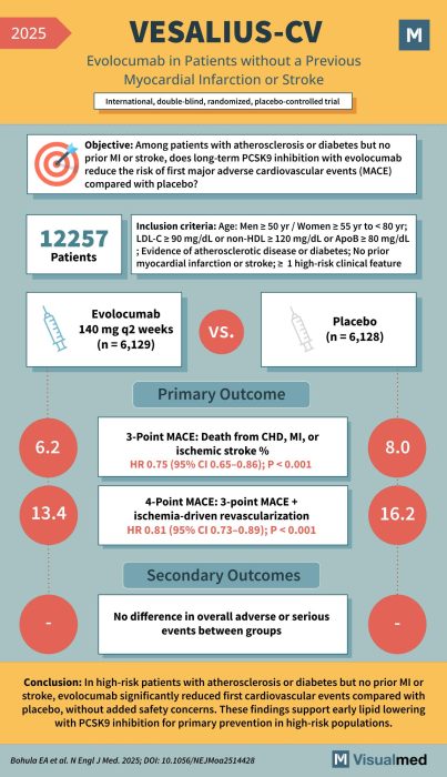 VESALIUS-CV Trial: Evolocumab in Patients without MI or Stroke