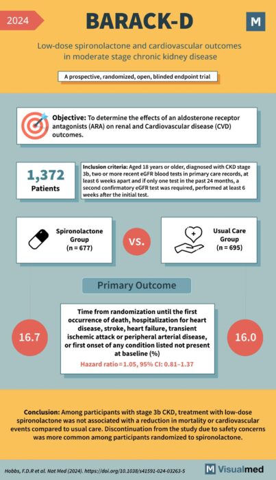 BARACK-D Trial: Low-Dose Spironolactone and Cardiovascular Outcomes in Moderate Stage Chronic Kidney Disease The BARACK-D trial is a prospective, randomized, open, blinded endpoint study that investigates the effects of low-dose spironolactone in patients with stage 3b chronic kidney disease (CKD) … Read More