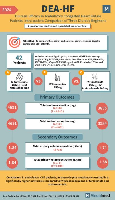The infographic details findings from the DEA-HF study, which was designed to evaluate the efficacy and safety of three different diuretic treatment regimens in patients with ambulatory congested heart failure (CHF). The study was conducted in a prospective, randomized, open-label, … Read More