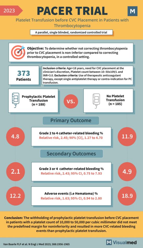 The PACER Trial: Revisiting Platelet Transfusions for CVC Placement The 2023 PACER Trial investigated a critical aspect of clinical care involving patients with thrombocytopenia undergoing central venous catheter (CVC) placement. This parallel, single-blinded, randomized controlled trial aimed to establish whether … Read More