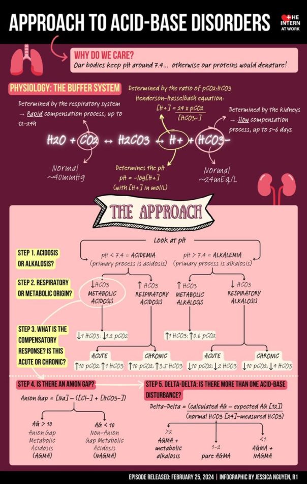 Maintaining acid-base balance is vital for cellular function. Our bodies tightly regulate blood pH around 7.4, since even slight deviations can alter enzyme activity and protein structure. Let’s break down how clinicians approach acid-base disorders in a systematic way. Source … Read More